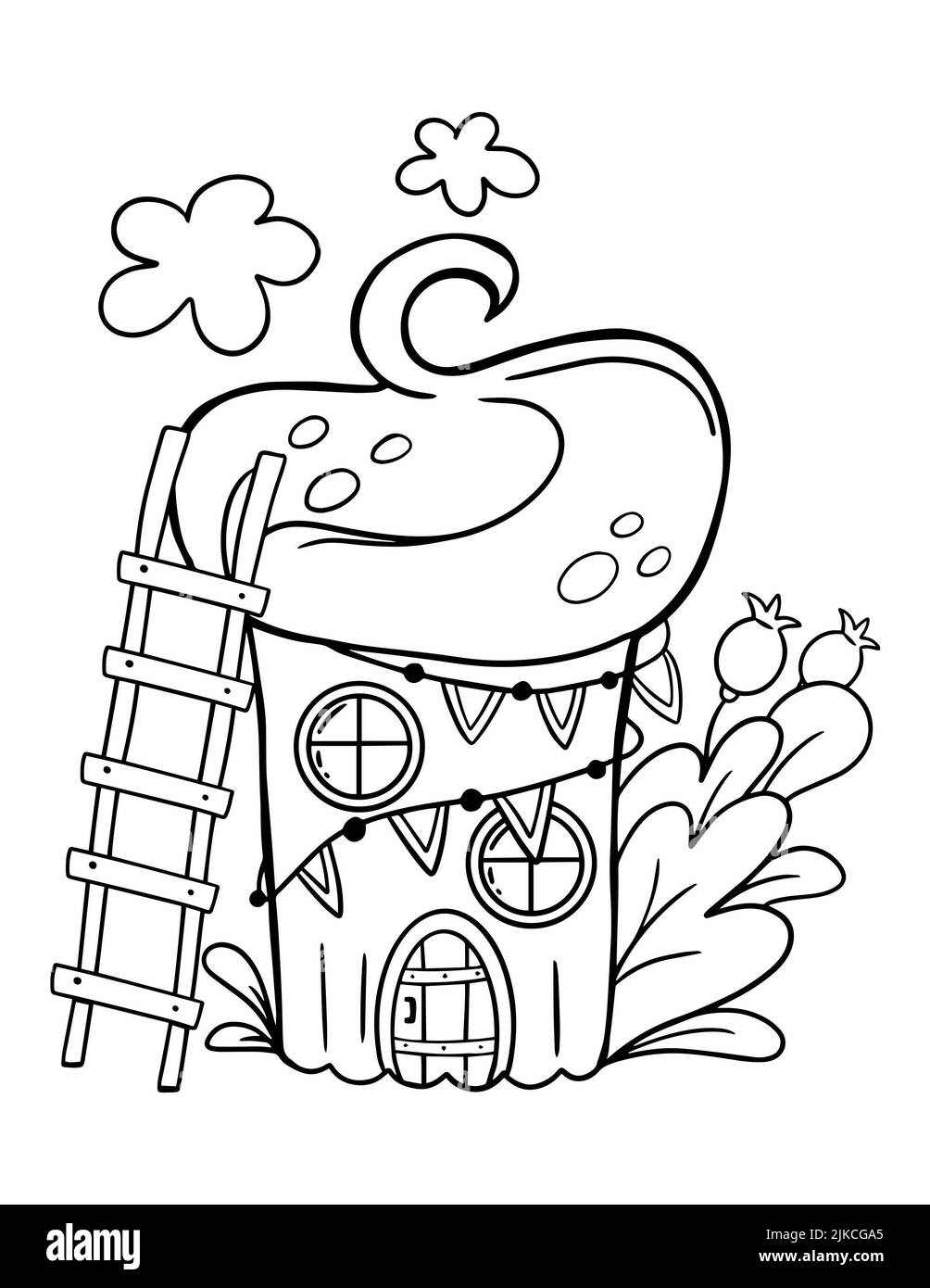 Cartoon house coloring page for kids and adults. Outline home illustration Stock Photo - Alamy