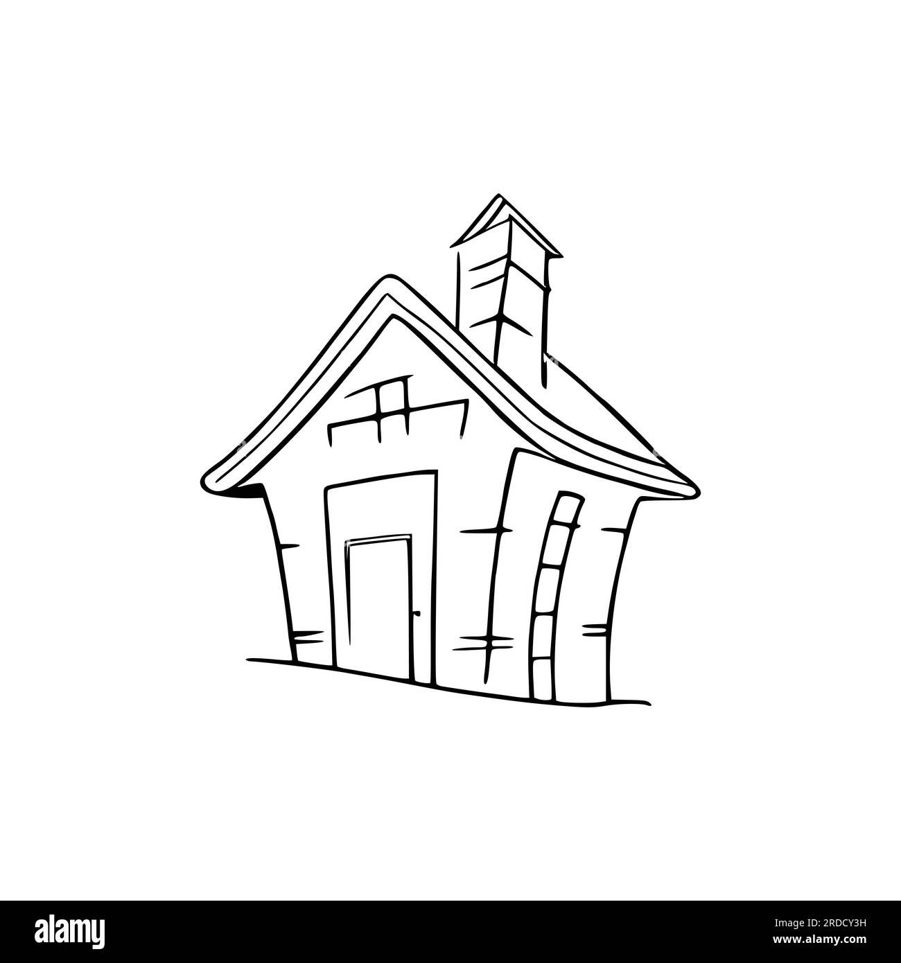 Hand drawn outline old and cozy small house. Cute cottage isolated on white background for coloring page 20142857 Vector Art at Vecteezy
