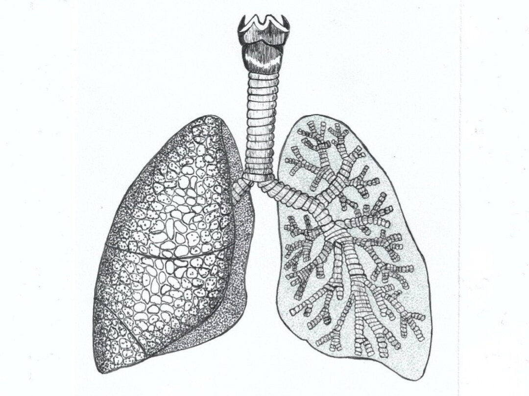 0: Black and white line drawing of lungs and trachea. Developed with... | Download Scientific Diagram
