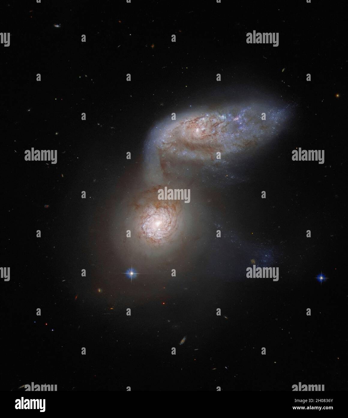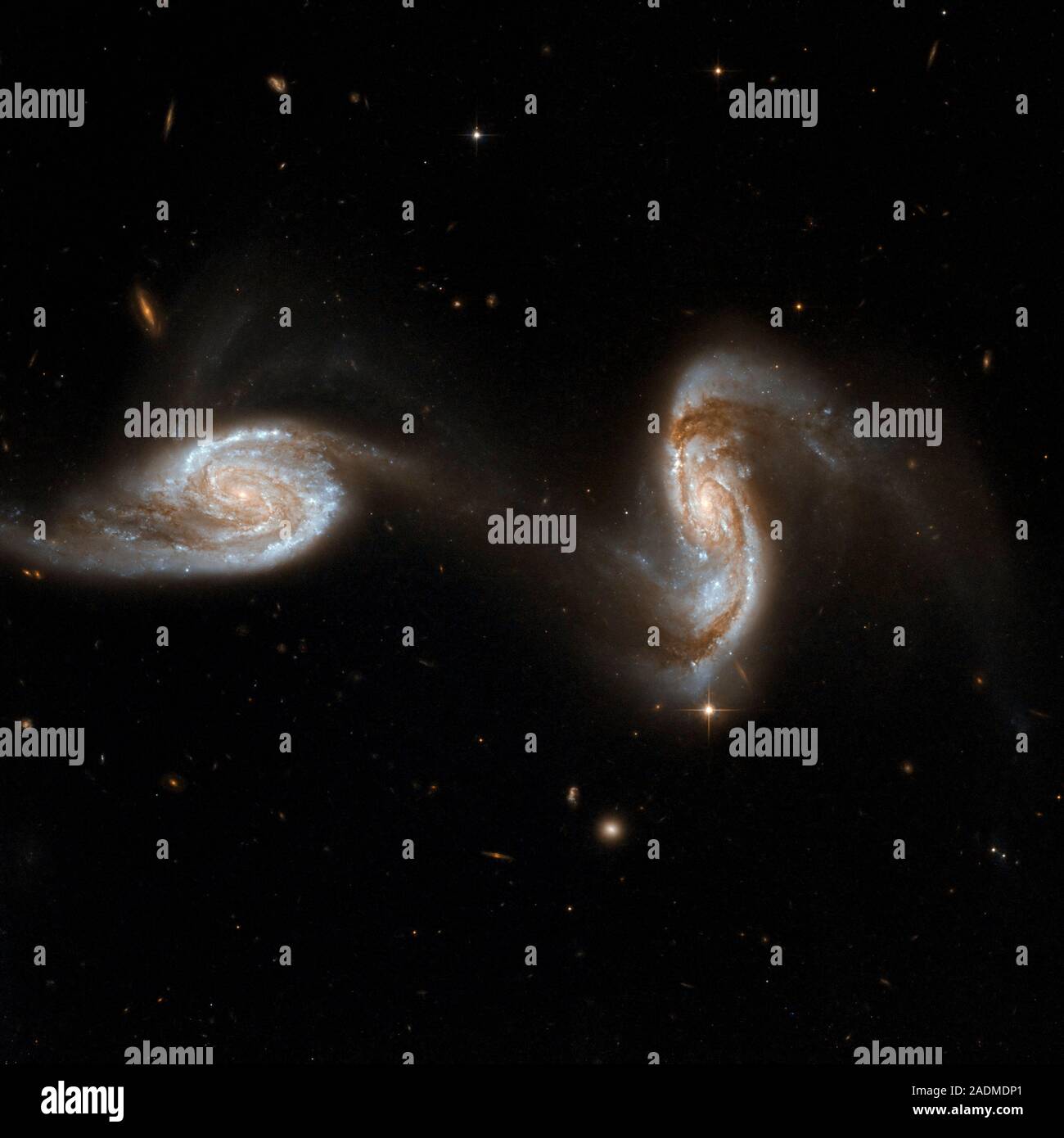 Interacting galaxies NGC 5257 and NGC 5258. Hubble Space Telescope (HST) image of two interacting spiral galaxies, collectively known as Arp 240. Loca Stock Photo - Alamy
