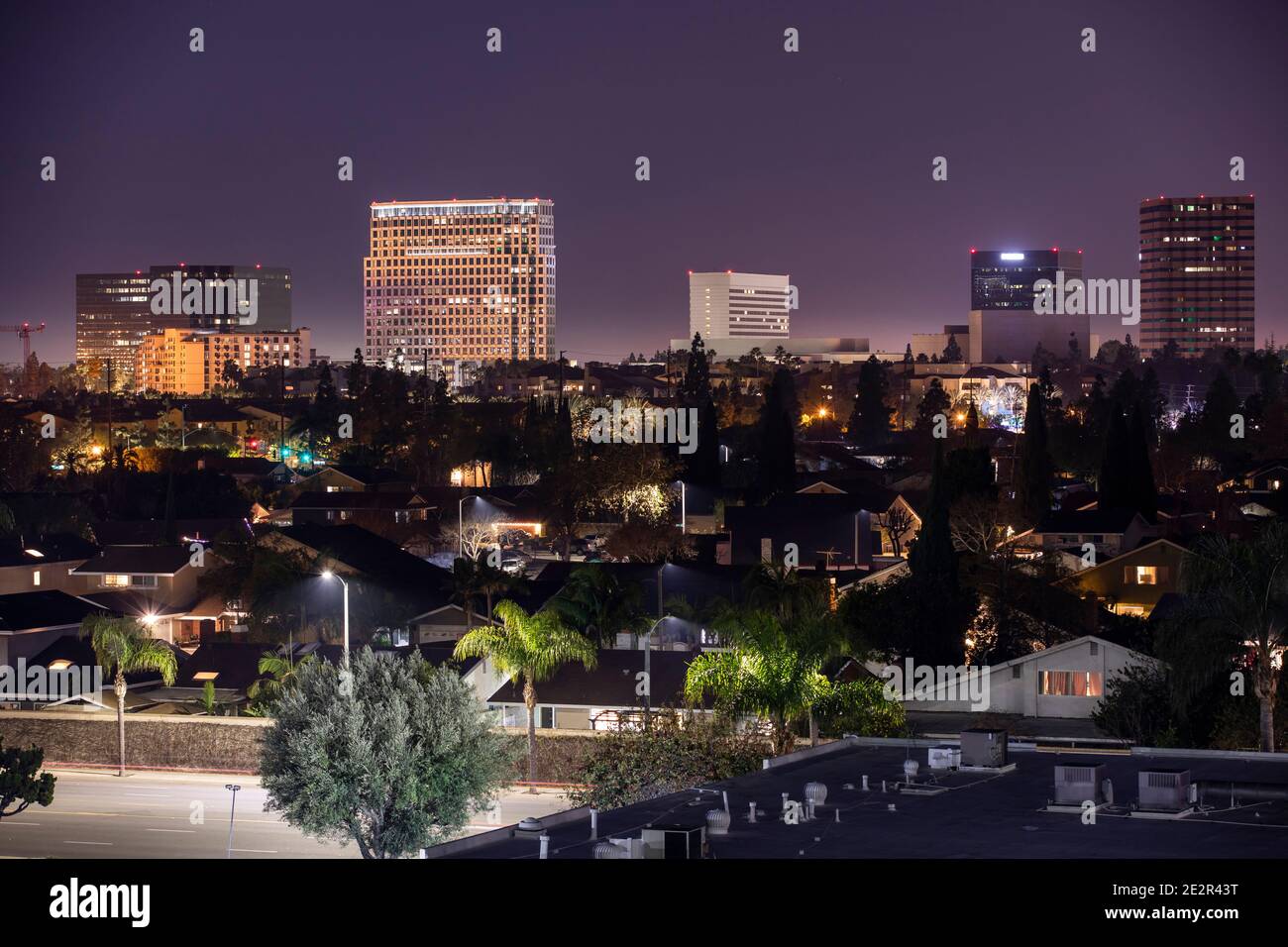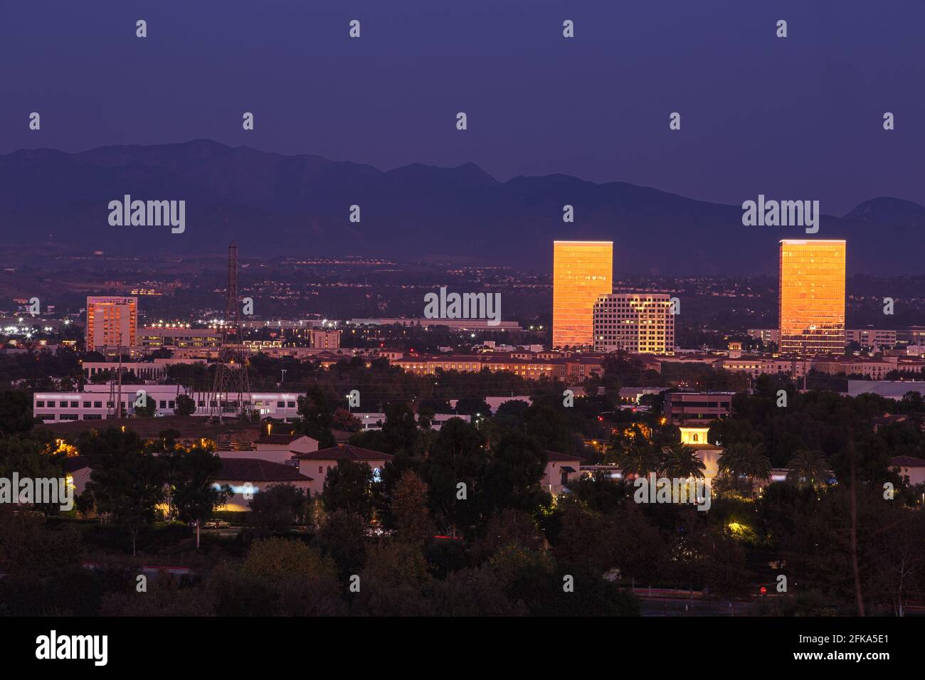 Nighttime view of the skyline of Irvine, California, USA Stock Photo - Alamy