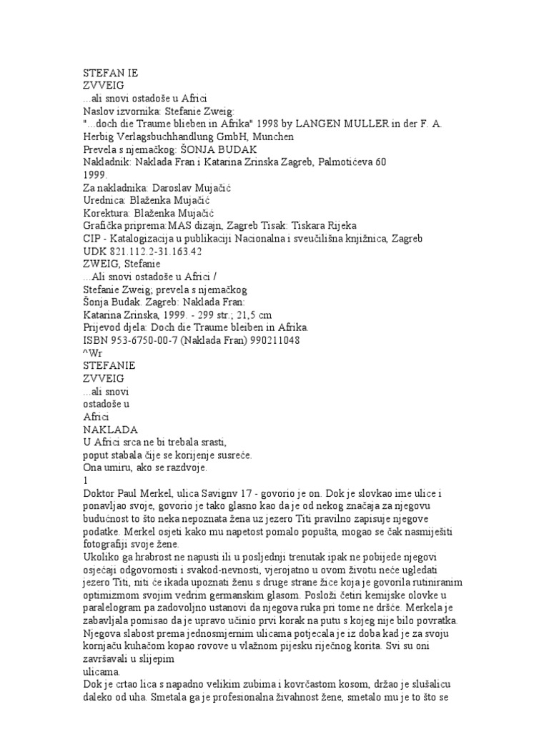 STEFANIE ZWEIG - Ali Snovi Ostadoše U Africi | PDF