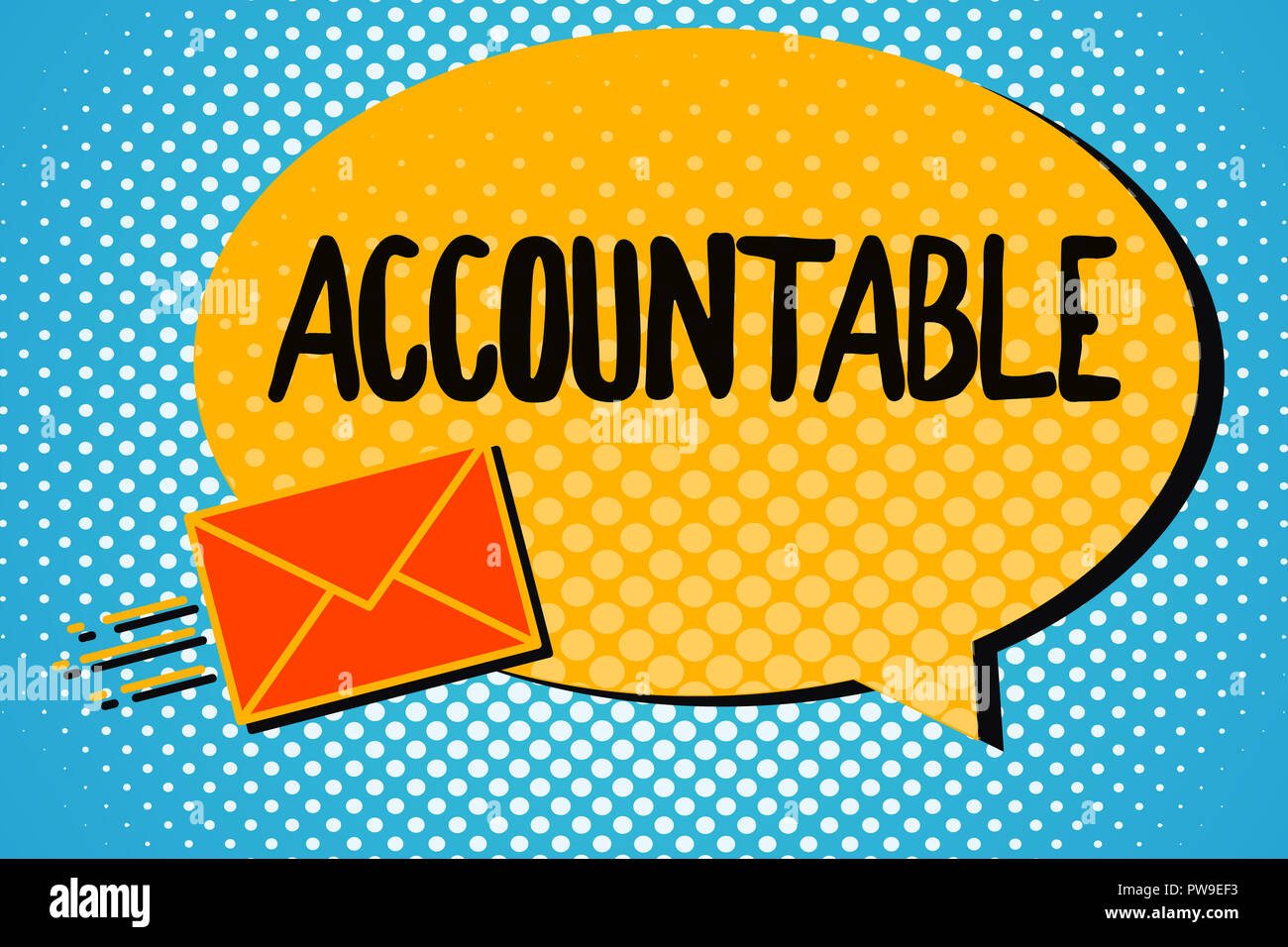 Handwriting text Accountable. Concept meaning Required or expected to justify actions or decisions Responsible Stock Photo - Alamy