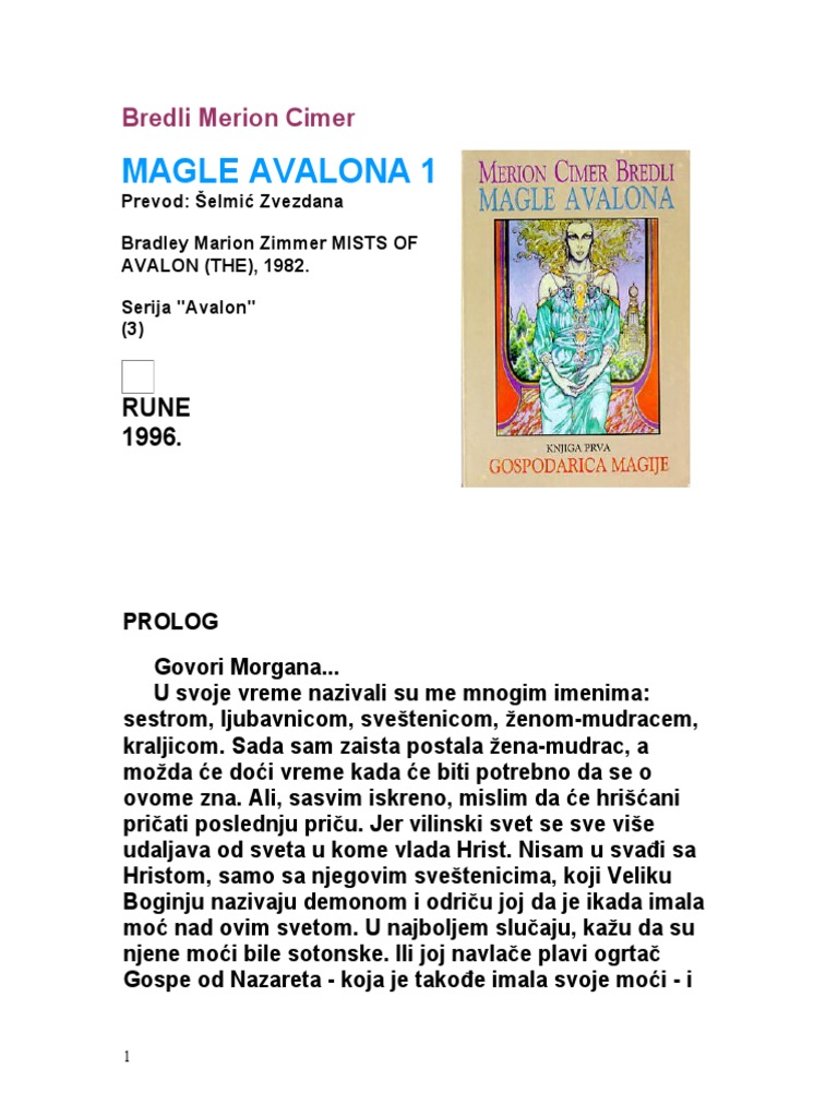 Magle Avalona I (Gospodarica Magije) - Bredli Merion Cimer | PDF