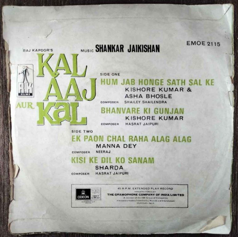 Kal Aaj Aur Kal (1971) Shankar-Jaikishan Pre-Owned Vinyl, 7 ...
