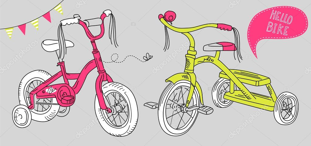 Tricycle, children bicycle. Sketch scratch board imitation. Color pink. Stock Vector | Adobe Stock