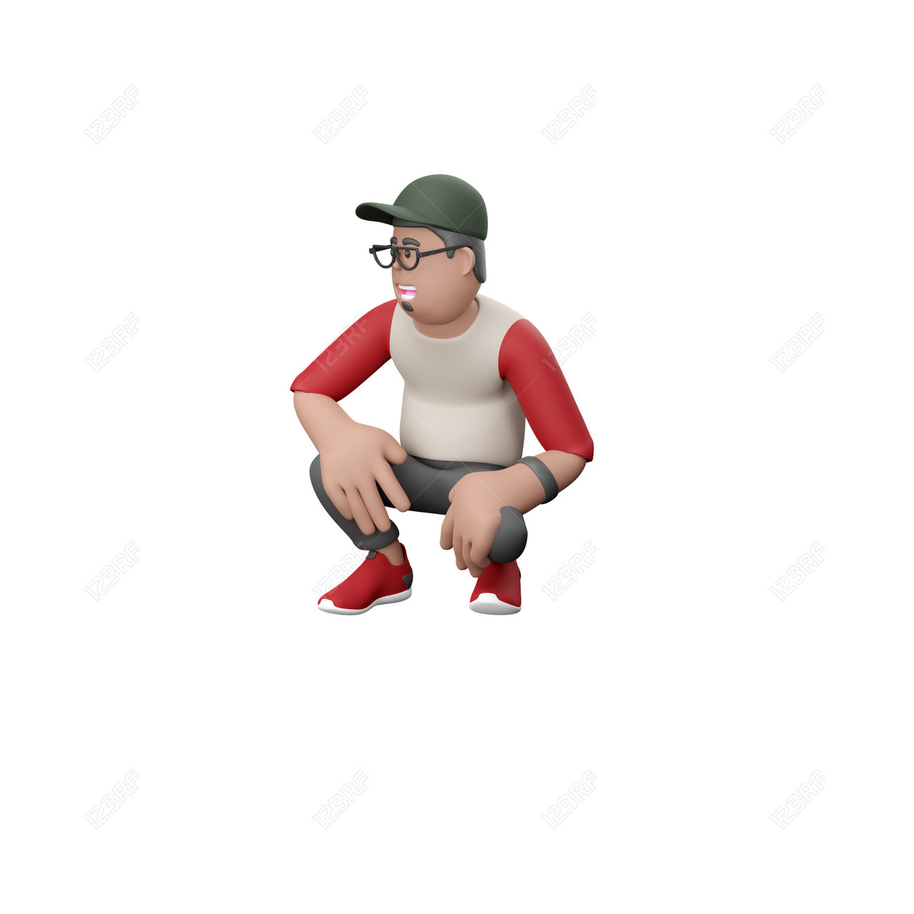 3D Man With Beanie Kneeling On One Knee Free Image and Photograph 189819817.