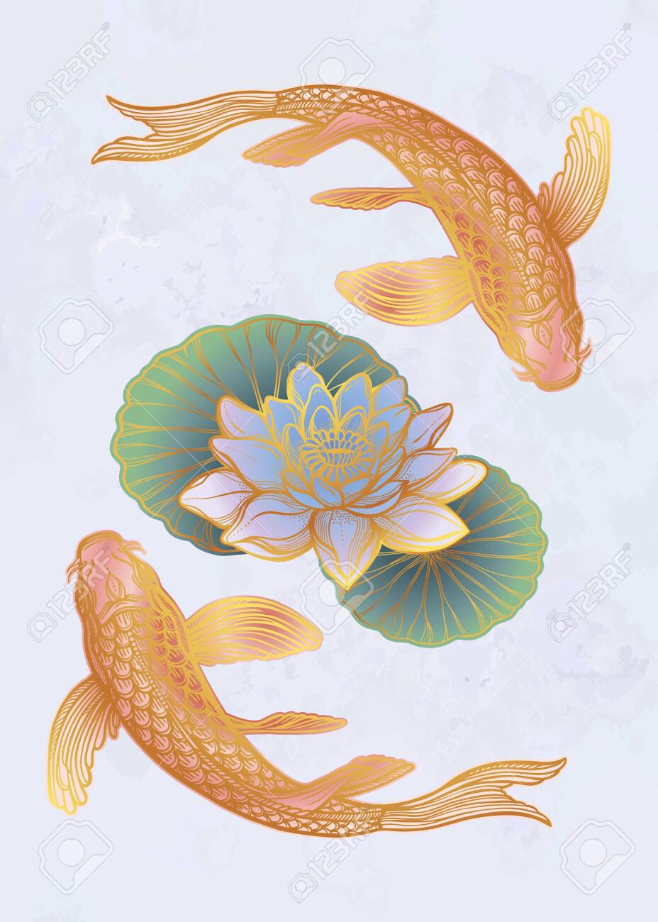 Hand Drawn Koi Fish Flower Tattoo Stock Vector (Royalty Free) 710189659 | Shutterstock