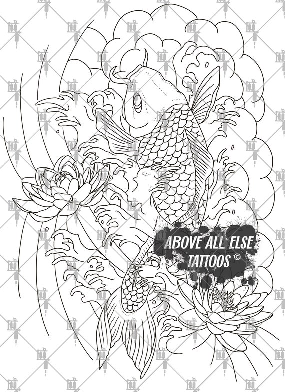 Koi Fish Outline Temporary Tattoo / Koi Tattoo / Japanese Koi - Etsy