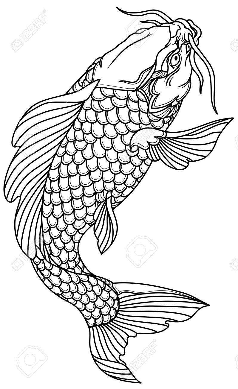 Koi Carp Fish Swimming Up. Outline Tattoo. Isolated Vector Illustration Royalty Free SVG, Cliparts, Vectors, and Stock Illustration. Image 145685420.