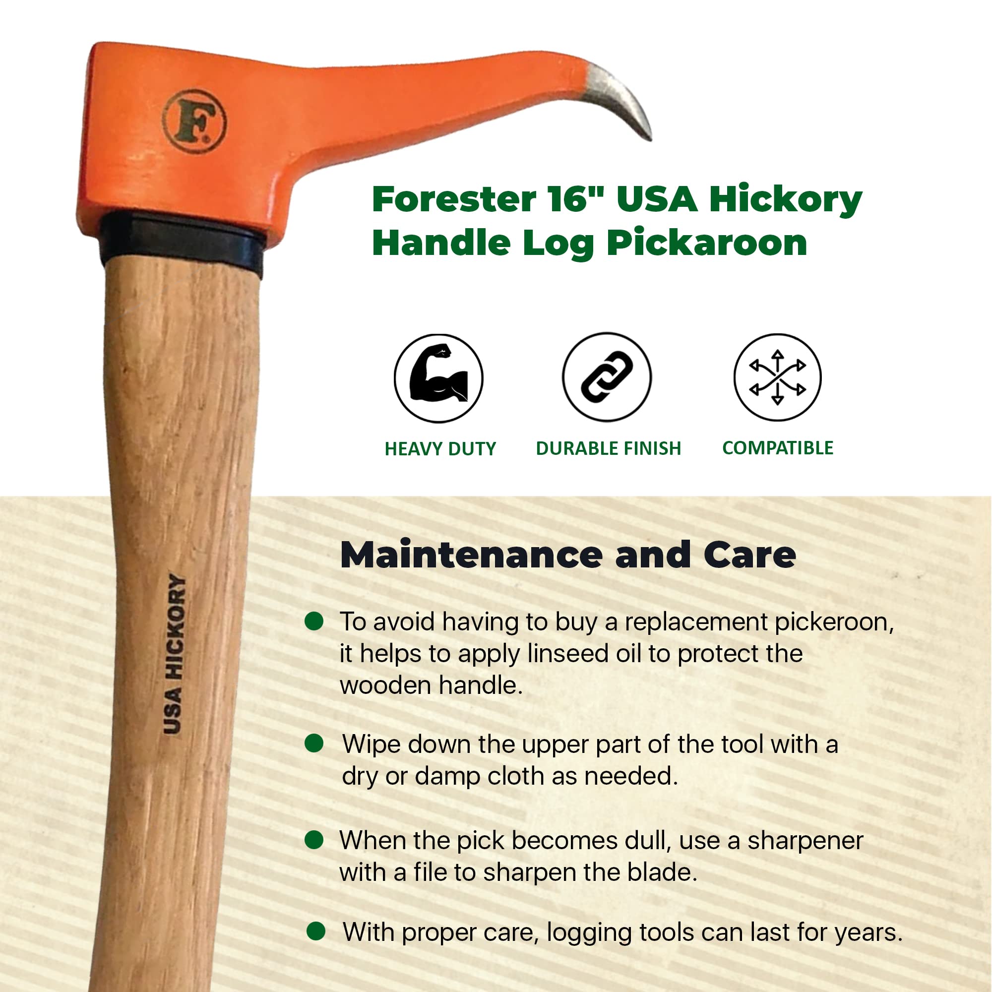 FORESTER Pickaroon Logging Tool 16in | USA Hickory Handle | Hookaroon Logging Tool | Log Roller Tool & Forestry Tools for Dragging and Stacking Logs
