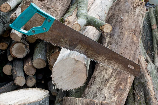 Wooden Logs Wit Hand Saw Grass Stock Photo by ©vencav ...