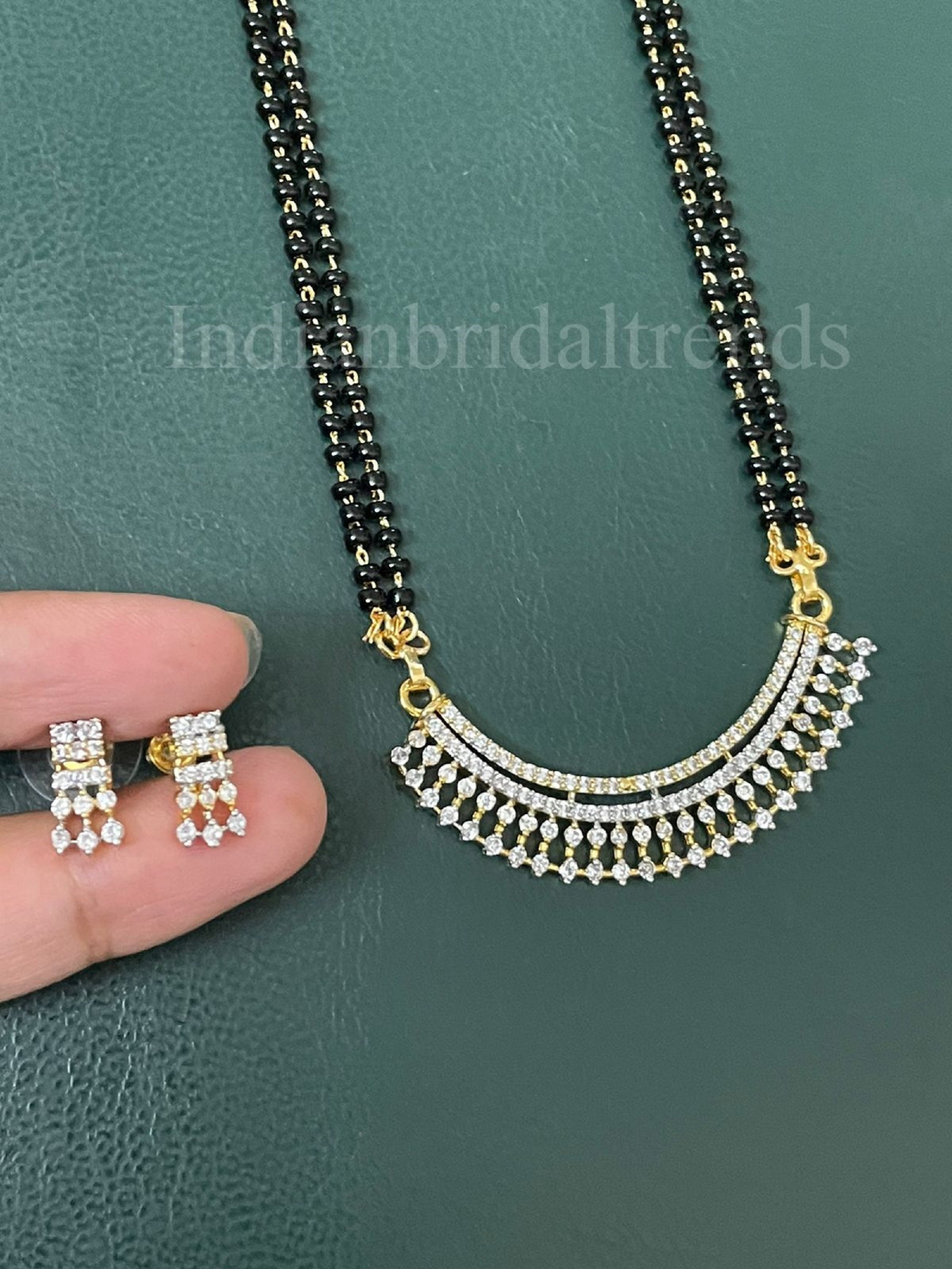 CZ and AD Diamond Gold Plated Mangalsutra/ Earrings/ Black ...