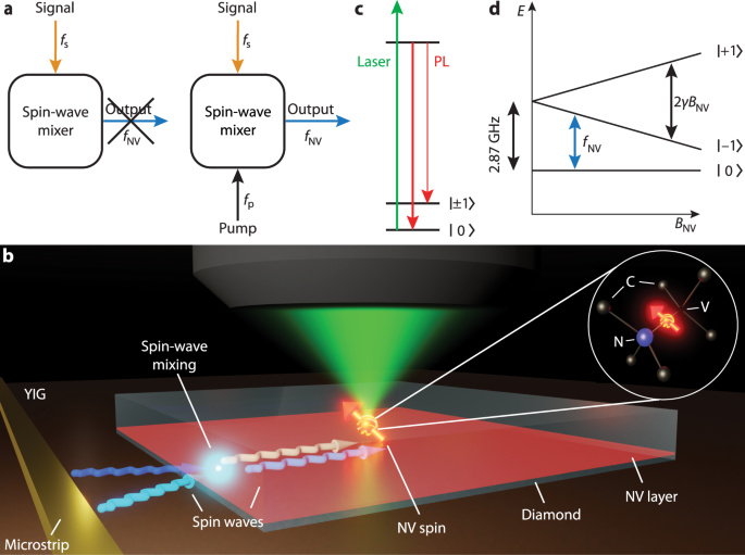 Broadband microwave detection using electron spins in a hybrid diamond-magnet sensor chip | Nature Communications