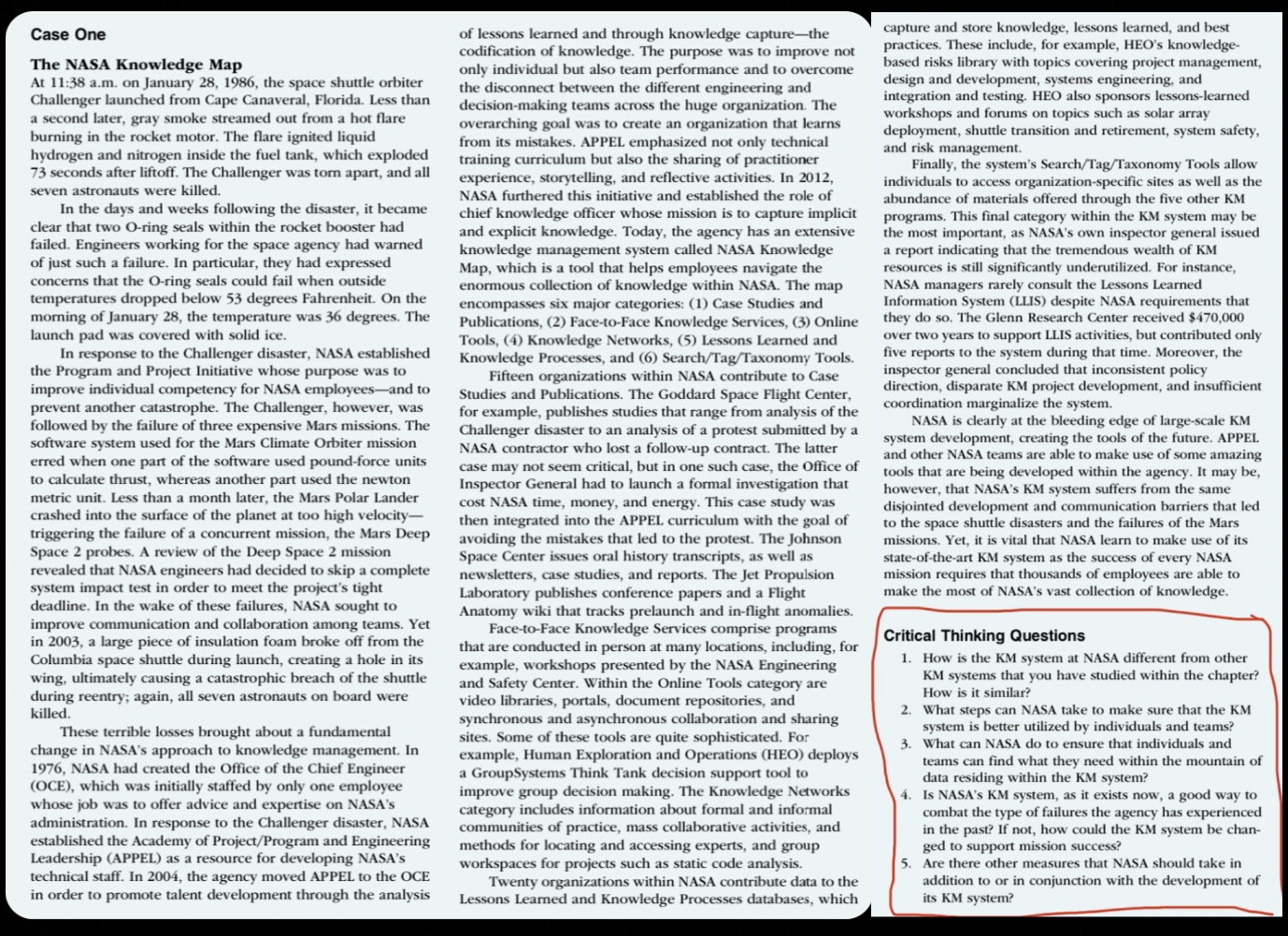 Solved Case One The NASA Knowledge Map At 11:38 a.m. on | Chegg.com