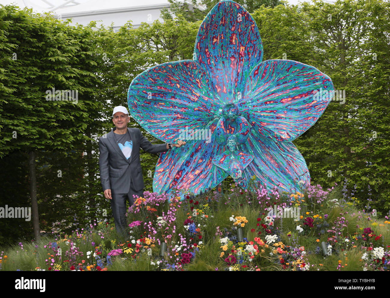 British Artist Marc Quinn poses next to his large orchid sculpture at the 100th Chelsea Flower Show in London on Monday, May 20 2013. UPI/Hugo Philpott Stock Photo - Alamy