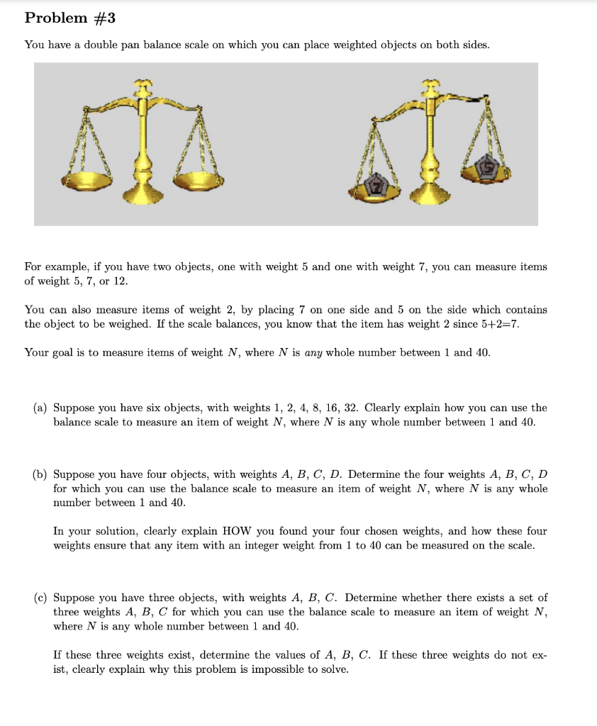 Problem #3 You have a double pan balance scale on | Chegg.com