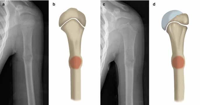 Anteroposterior (A) and lateral (B) x-ray of the right humerus. A... | Download Scientific Diagram