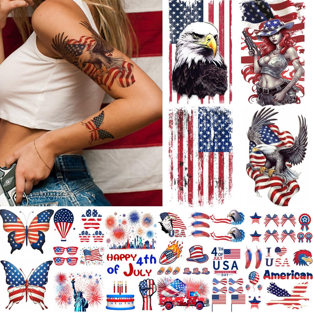 Amazon.com : Jctato 4th of July Tattoos Half Arm ...