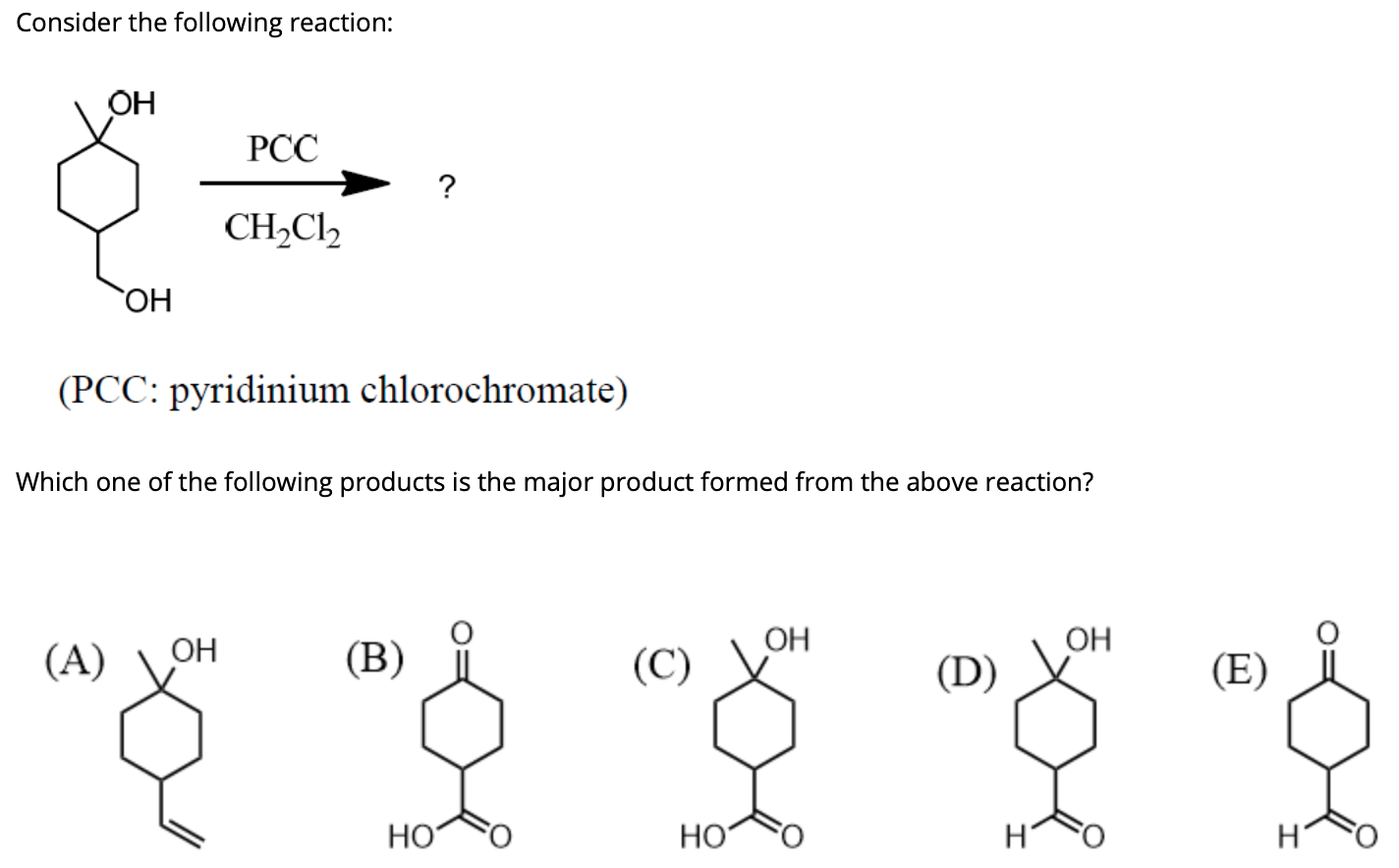 Solved Consider the following reaction: ОН PCC ? CH.Cl2 ОН | Chegg.com