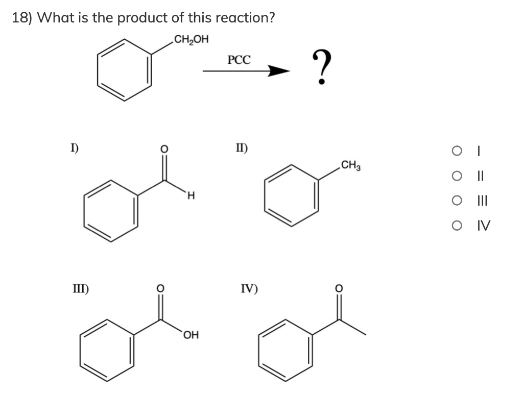 Solved 18) What is the product of this reaction? CH2OH PCC ...