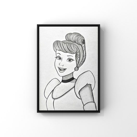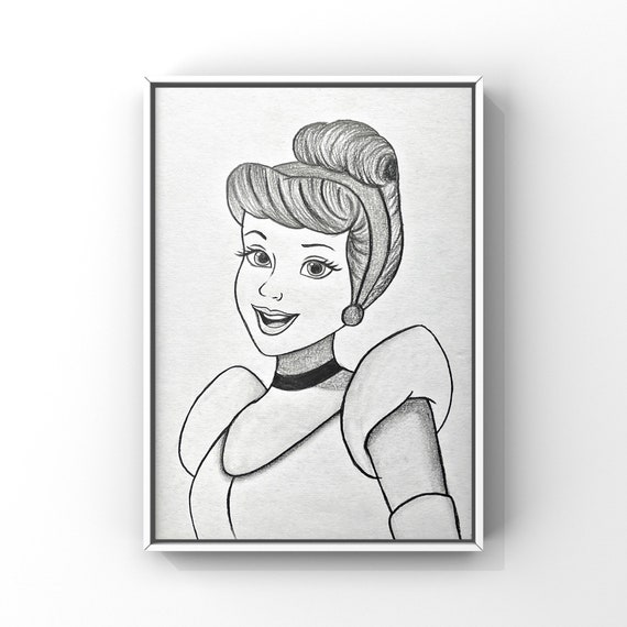 Original Hand Drawn Pencil Sketch of Princess Cinderella. A4 Pencil Drawing - Etsy