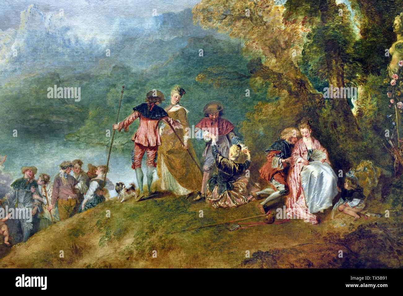 Jean-Antoine Watteau, Pilgrimage to Cythera, (The Embarkation for Cythera), painting detail, 1717 Stock Photo - Alamy