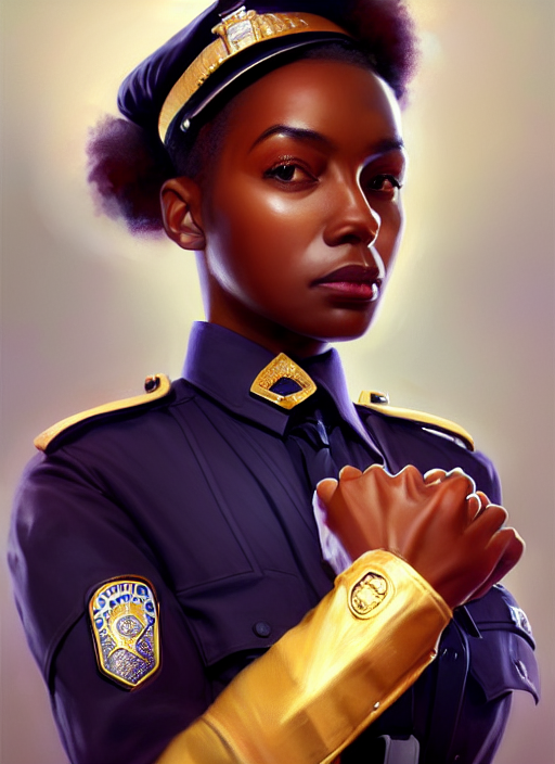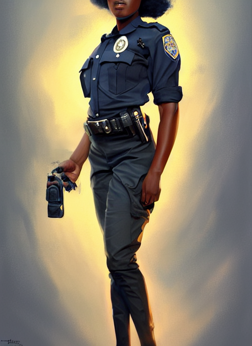 Prompthunt: full body portrait of young black woman as a police officer, police uniform, intricate, beautiful and elegant, highly detailed, digital painting, artstation, concept art, smooth, sharp focus, illustration, art by wlop,