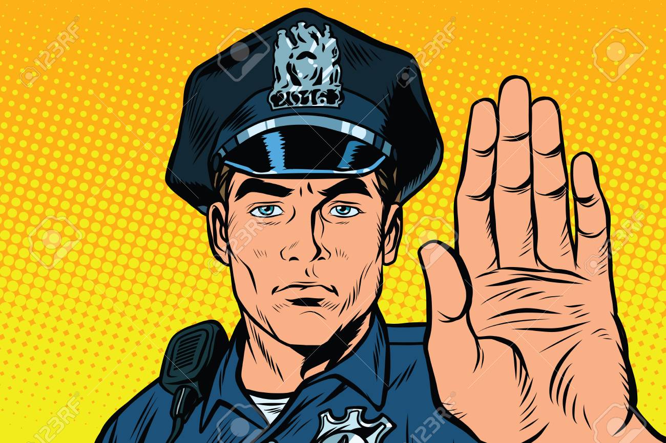 Retro Police Officer Stop Gesture, Pop Art Retro Illustration. Law And Order Royalty Free SVG, Cliparts, Vectors, and Stock Illustration. Image 65715511.