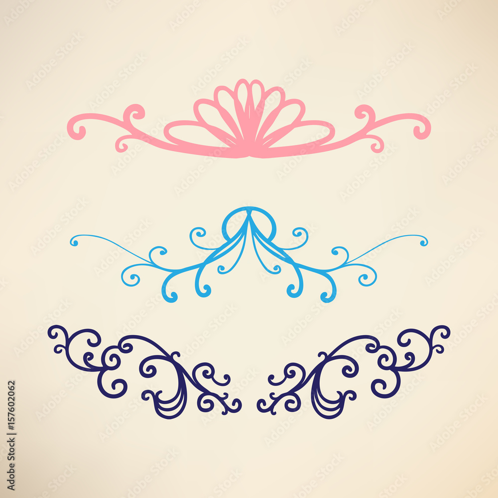 Vector set of pretty border underline design elements or paragraph text dividers in fancy scrollwork and decorative curls, hand drawn wedding announcement or invitation detail in elegant vintage lines Stock Vector |