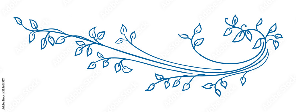 Leaves and curls in hand drawn vector design element for borders or corners, chapter or paragraph underline or divider for books or website design, wedding invitations, pretty nature doodle Stock Vector |
