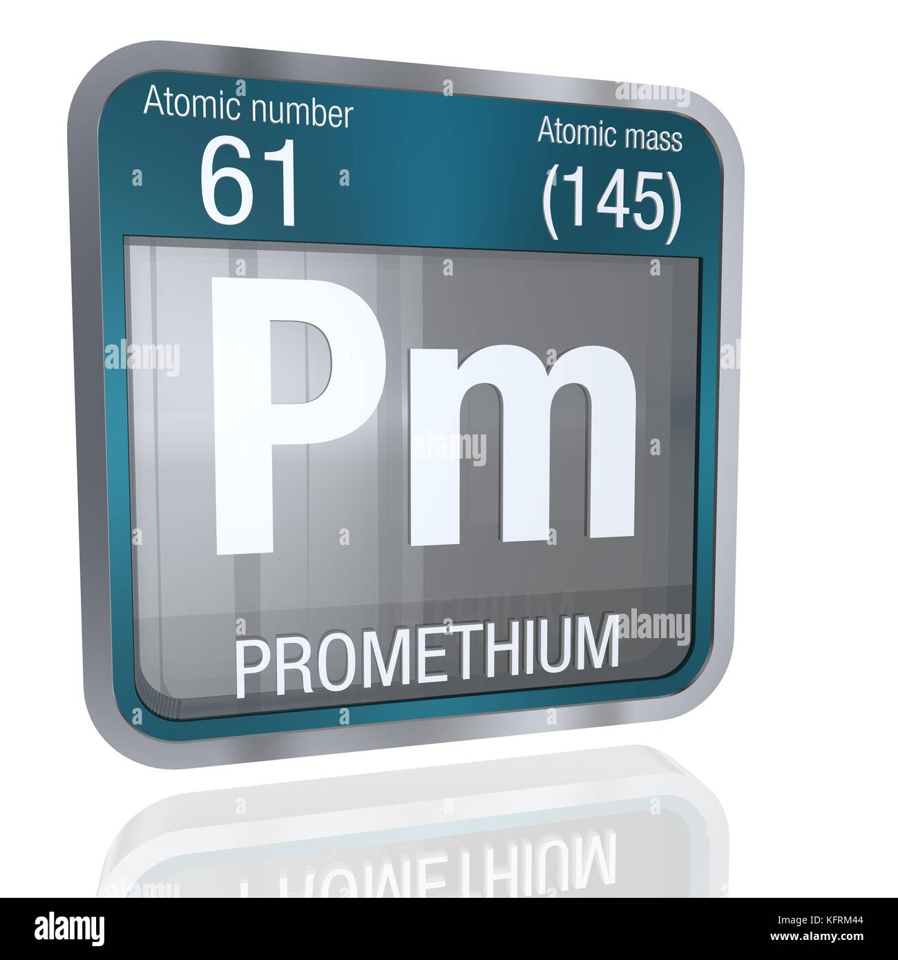 Promethium symbol in square shape with metallic border and transparent background with reflection on the floor. 3D render. Element number 61 of the P Stock Photo - Alamy