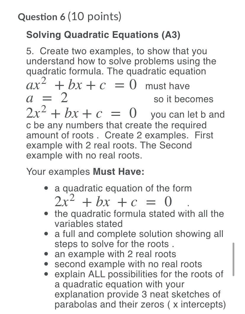 Solved = = 2 Question 6 (10 points) Solving Quadratic | Chegg.com