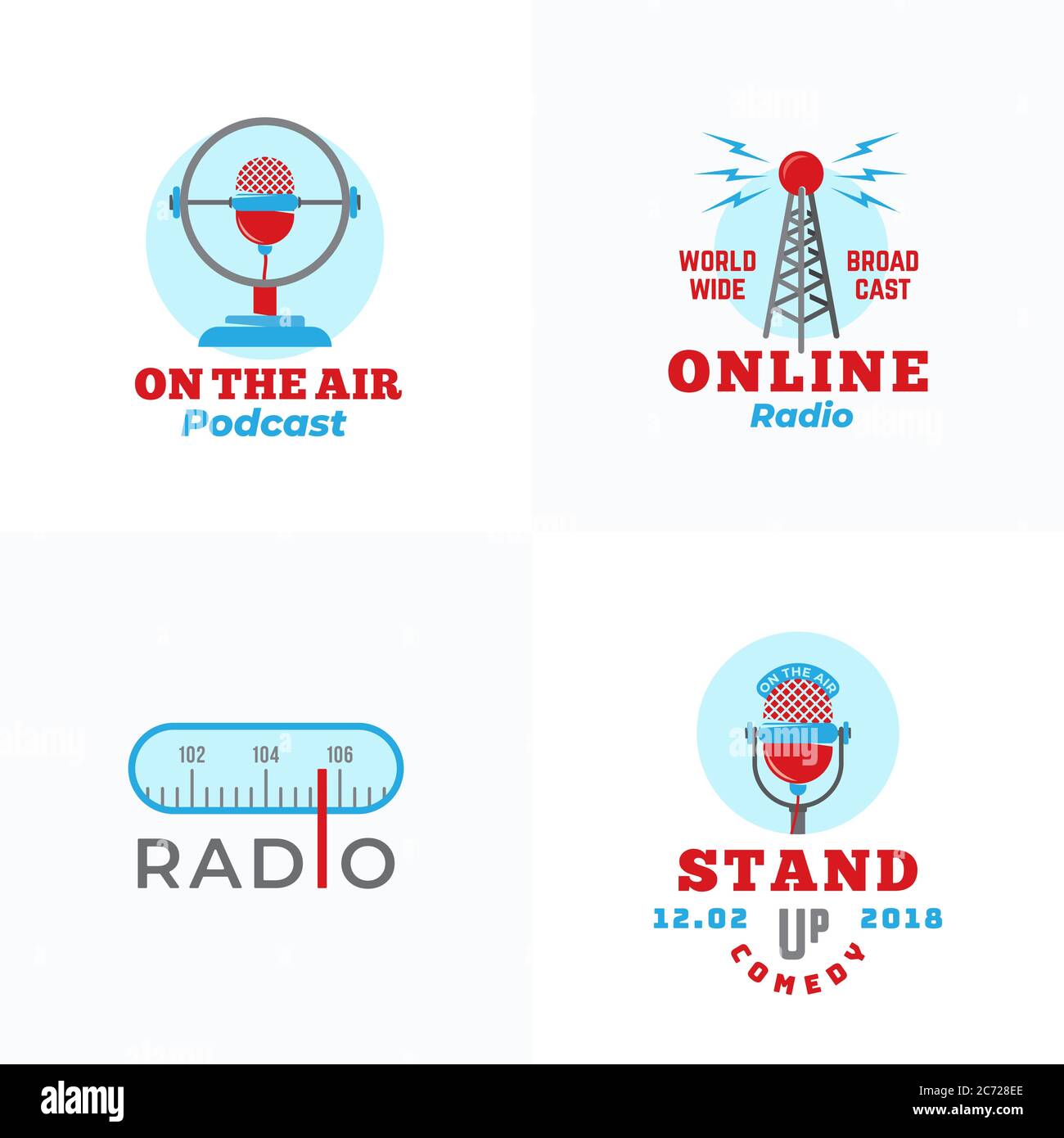 A set of Radio Vector Emblems. Abstract Broadcast Tower, Podcast or Stand Up Comedy Microphone Signs or Logo Templates. Radio Scale and On the Air Stock Vector Image & Art - Alamy