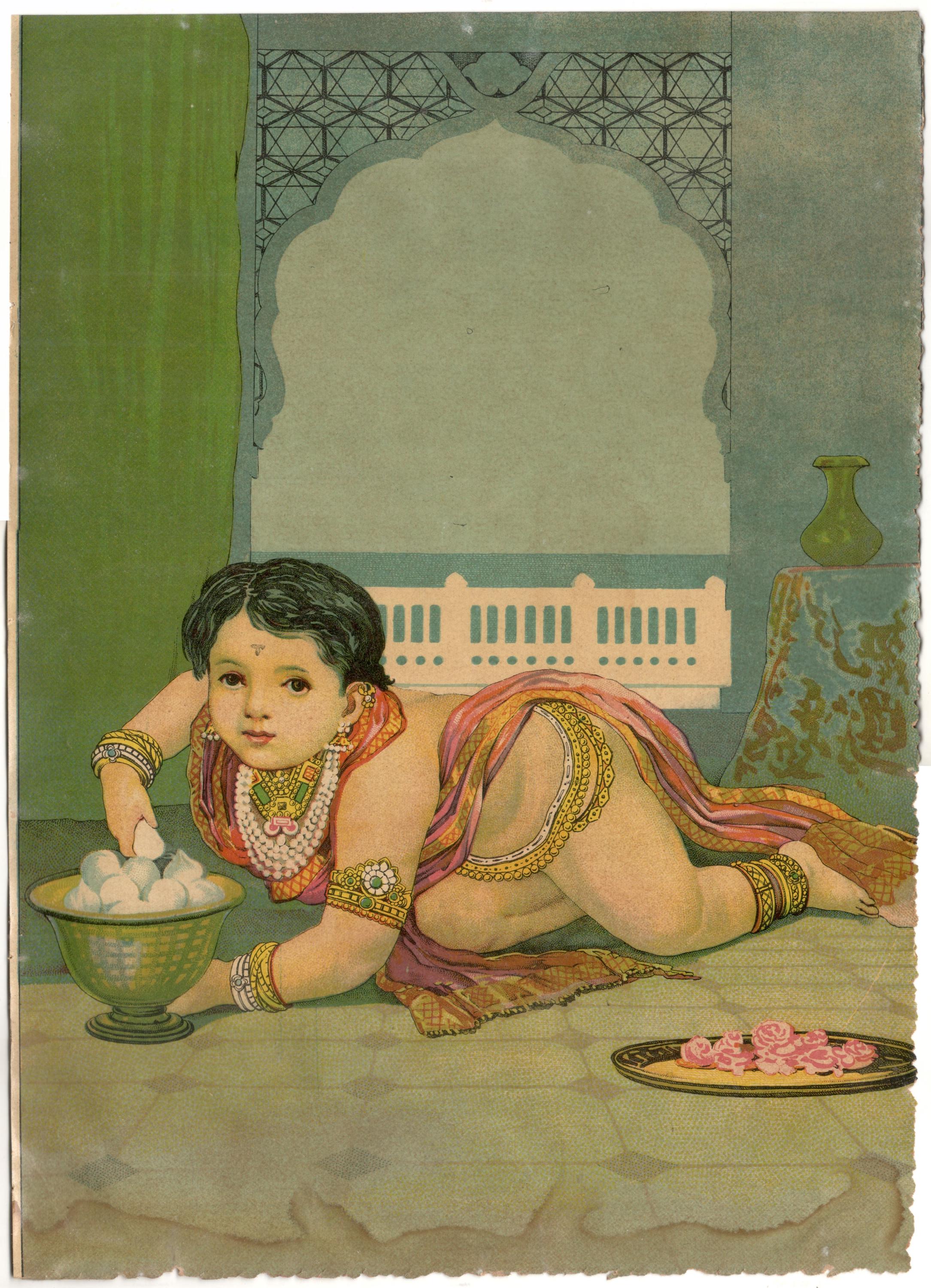 Rare Original Raja Ravi Varma Lithograph: Bal Krishna Baby Krishna ...