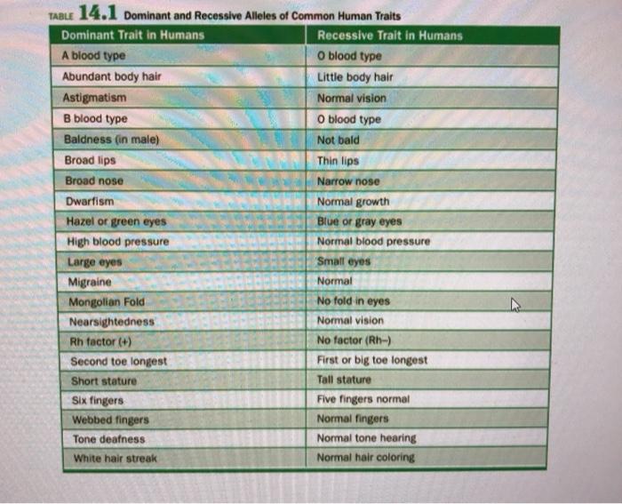 Solved TABLE 14.1 Dominant and Recessive Alleles of Common ...