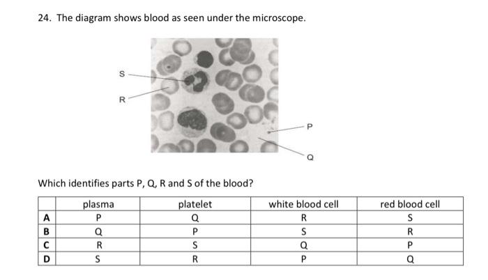 Solved 24. The diagram shows blood as seen under the | Chegg.com