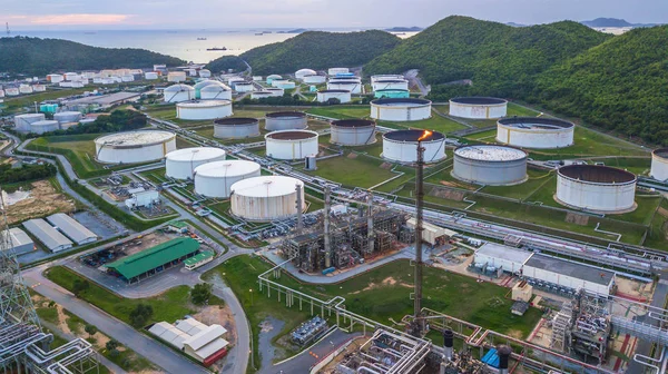 Storage Tanks At An Oil Refinery With Smokestacks In The Background United Arab Emirates High-Res Stock Photo - Getty Images