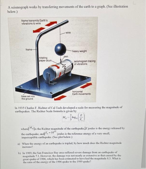 Solved A seismograph works by transferring movements of the | Chegg.com