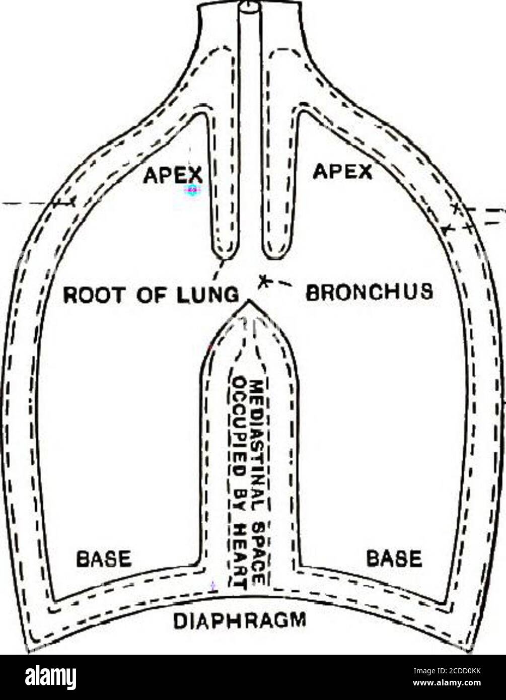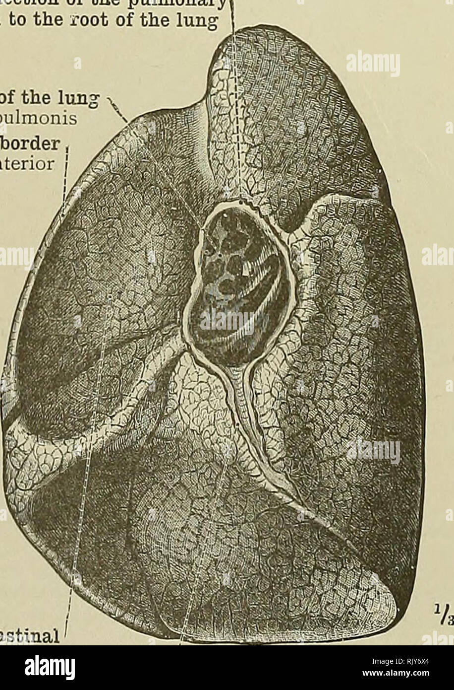 The comparative anatomy of the domesticated animals. Horses; Veterinary anatomy. 546 RESPIRATORY APPARATUS IN MAMMALIA. The external or costal face is convex (and smooth), and moulded to the external wall, of