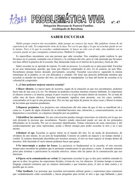 Saber escuchar - Delegació Diocesana de Pastoral Familiar