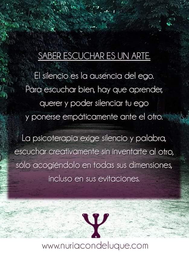 Nuria Conde-Luque on X: "SABER ESCUCHAR ES UN ARTE. El silencio es la ausencia del ego. Para escuchar bien, hay que aprender, querer y poder silenciar tu ego y ponerse empáticamente ante