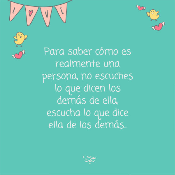 Frase #54245: Para saber cómo es realmente una persona, no escuches lo que dicen los demás de ella, escucha lo que dice ella de los demás.. – Crea Tu Frase