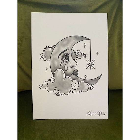 Sad Moon Tattoo Print Tattoo Design Tattoo Art Wall Art - Etsy