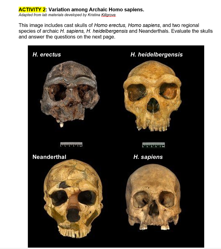 Solved ACTIVITY 2: Variation among Archaic Homo sapiens. | Chegg.com