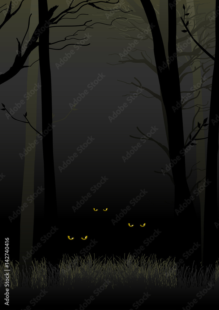 Scary eyes staring and lurking from dark woods Stock Vector ...