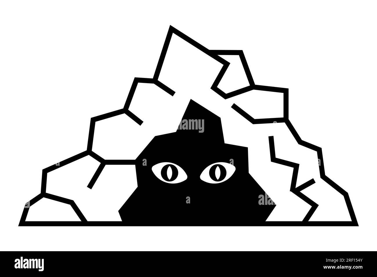 Black icon cave with scary eyes peeking out of the darkness. flat ...