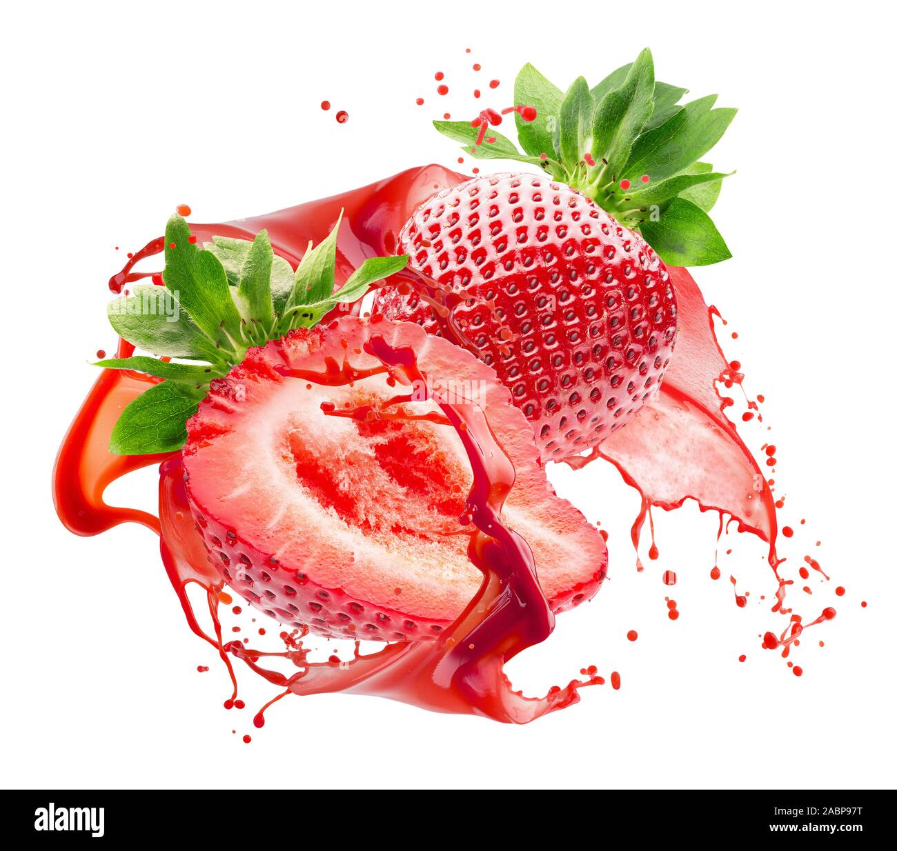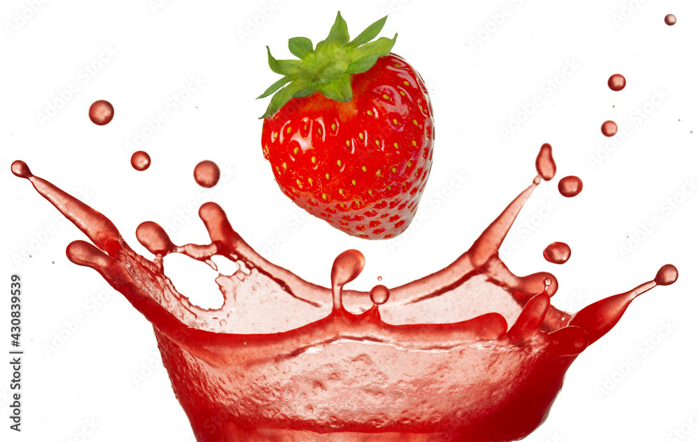 Strawberry juice in glass isolated on white. Whole strawberry berries with fresh squeezed juice glass. Vector image about beverages, fruits, agriculture, food, gastronomy, etc:: tasmeemME.com