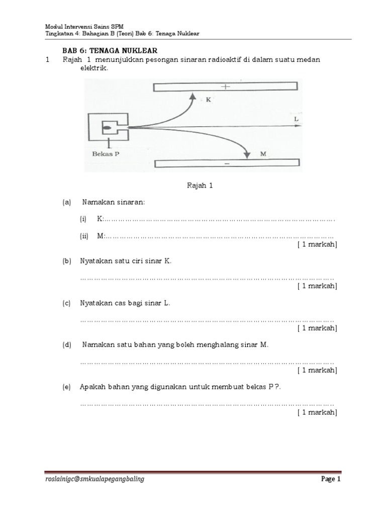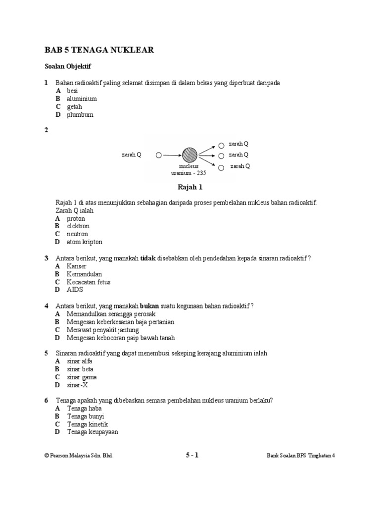 6.5.2 Penghasilan Tenaga Nuklear dan Kegunaannya (Soalan Objektif ...