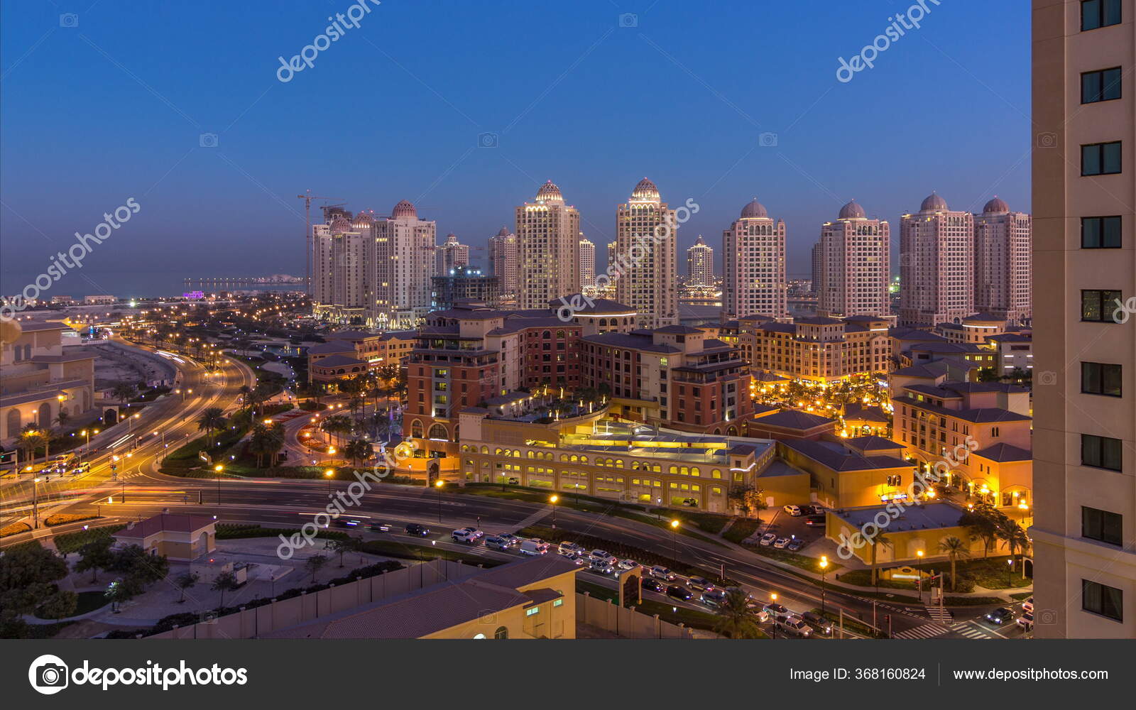 Aerial View of the Pearl-Qatar Island in Doha, Night Time Stock Photo - Image of quartier, city: 231382580